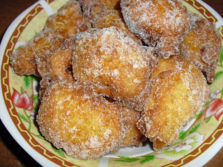 Quando scolati a sufficienza, passarli ancora caldi nello zucchero e metterli in una scodella o su un vassoio.